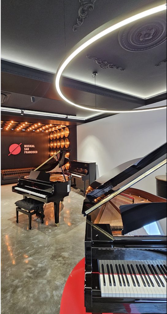 Esta reforma diseñada y ejecutada por Arqdeco, ubicada en Villena en la calle San Francisco, ha sido un proyecto muy especial tanto por el cambio drástico y resultado final, como por lo ilusionado y agradecido del cliente. Se renovó toda la instalación eléctrica, la iluminación indirecta es en color neutro para sacar el color real a los instrumentos, y luminarias lineales de techo forman las teclas de un gran piano. Musical San Francisco. (Imágenes cedidas por Arqdeco)